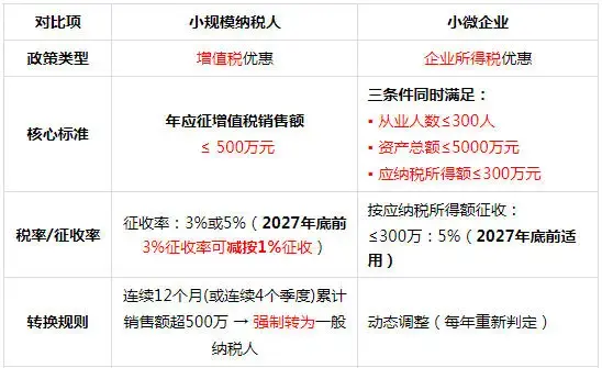 小规模纳税人无法直接享受小微企业的所得税减免;小微企业若是一般纳税人,不能享受小规模的增值税优惠 (如1%征收率、季度30万免征)。