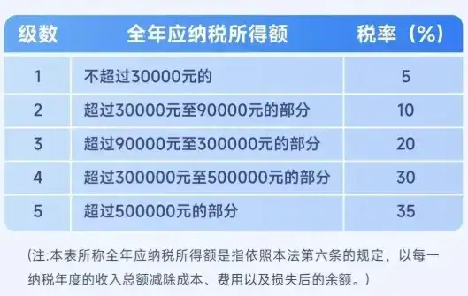 根据《中华人民共和国个人所得税法》第三条及第六条,经营所得,以每一纳税年度的收入总额减除成本、费用以及损失后的余额,为应纳税所得额,适用百分之五至百分之三十五的超额累进税率。