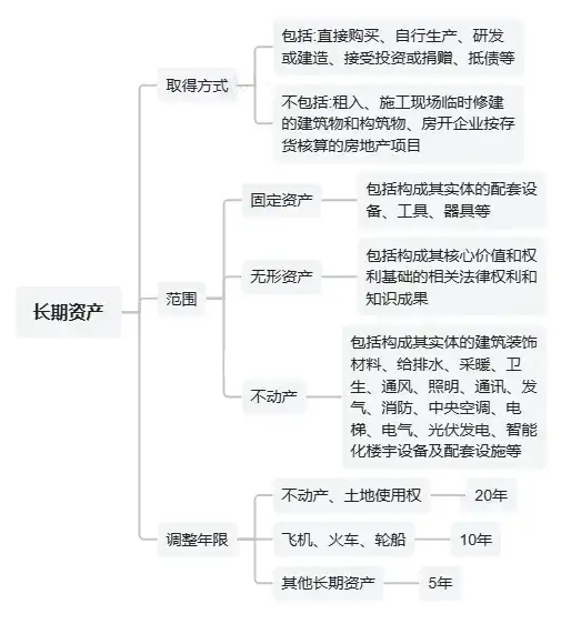 主要为《增值税法实施条例》第二十五条中关于长期资产进项税抵扣内容的补充,其核心内容无新增或删减,主要明确了长期资产的范围以及调整年限。