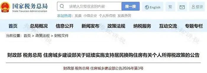 对2026.1.1-2027.12.31期间出售自有住房,并在出售后1年内重新购买住房的纳税人,对其出售现住房时缴纳的个人所得税予以退税!