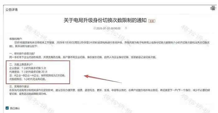 全国电子税务局完成系统升级,新增关键功能—身份切换登录次数限制。具体规则如下: