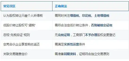 附:股权转让常见税务误区对照表